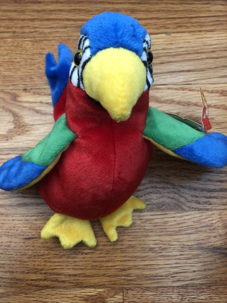 Jabber has 6 colors of fabric and 17 pattern pieces which make him one of the most difficult Beanies to produce. This is an Extremely RARE TY Original Beanie Baby named Jabber the Parrot. Bongo Chip Doodle. This is an Extremely RARE TY Original Beanie Baby named Jabber the Parrot. Your beanie babys tush tag will tell you which type of pellets the beanie baby contains. Museum Quality Major Tag Errors. TY Beanie Baby-Rare Spangle The Bear McDonalds 1999 New In Box Retired Rare Ty Beanie Baby Mel the Koala No Star on Tush PVC 1996 Tag Errors Best Very Rare 1996 Ty Beanie Babies Claude the Crab withErrors Original Retired. There is a 310 Stamp inside the Tush Tag was always faded when new. Mouse over to Zoom-Click to enlarge.