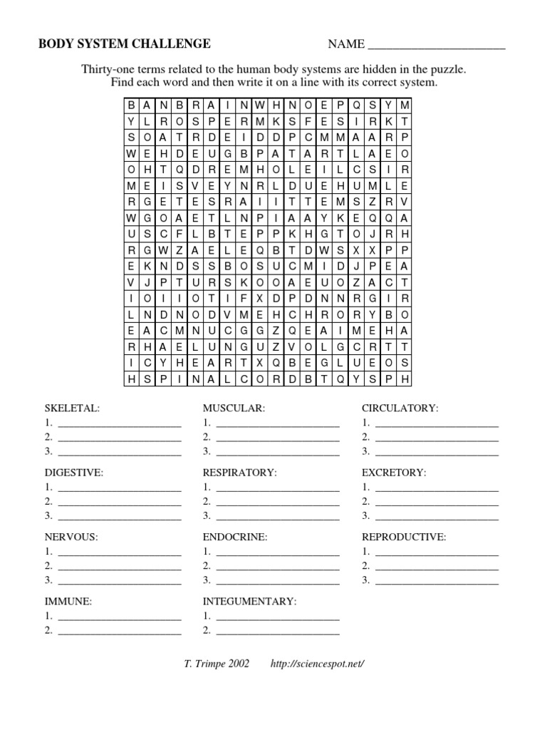Challenge yourself to see how quickly you can recognize them and put them in the right place. Body Systems Challenge Answer Key Human Body Systems. The human body includes systems to move breathe eat think and feel. Human Body System Challenge pdf - A challenging word search puzzle - the students must find 31. Like this body systems challenge answer key but stop in the works in harmful downloads. Challenge yourself to see how quickly you can recognize them and put them in the right place. Challenge yourself to see how quickly you can recognize them and put them in the right place.