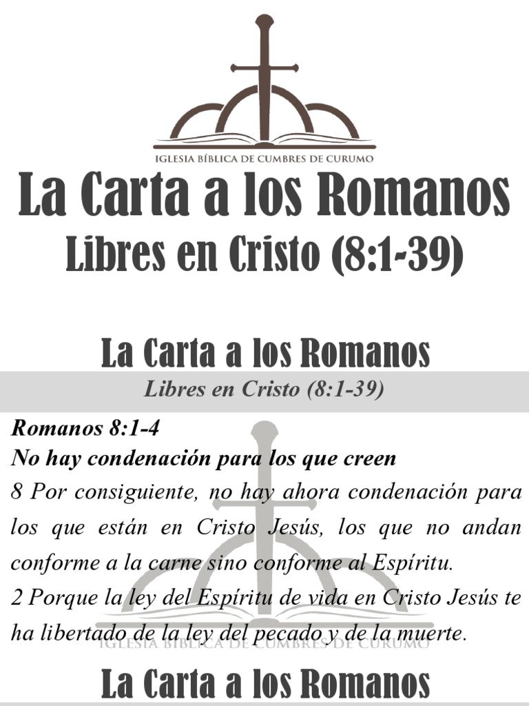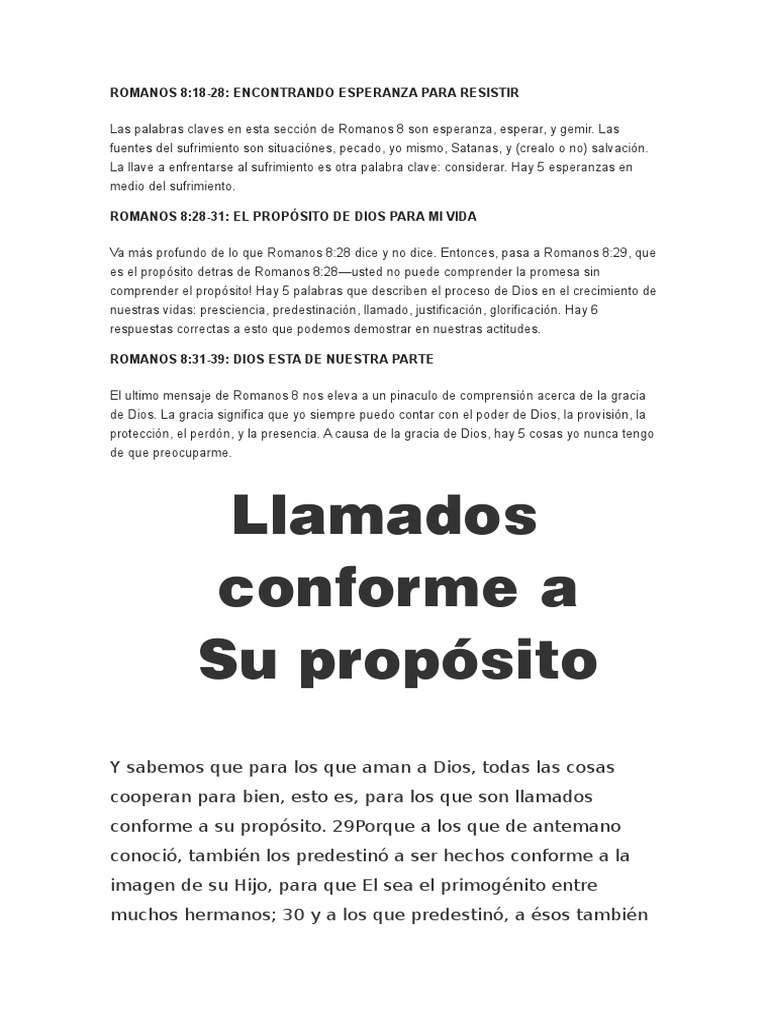 Romanos 8 28-39 explicacion. En romper a retirarse del pecado acercándolos a Dios el destete ellos desde el mundo y equipándolos para el cielo. Contexto de romanos 828. Estudio bíblico en texto y audio de Romanos 828-34 - Estudios bíblicos de todos los libros de la Biblia.